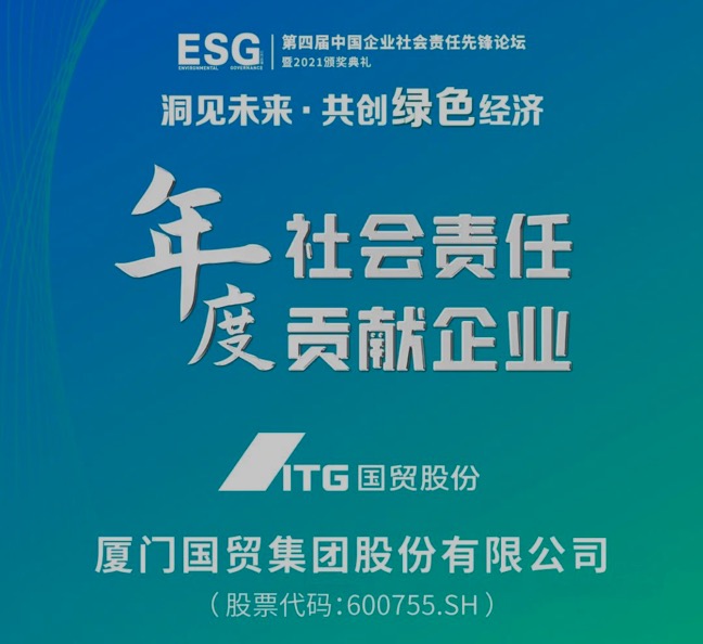 11月30日,由人民日報社旗下《國際金融報》主辦的“洞見未來 共創(chuàng)綠色經濟”2021·第四屆中國企業(yè)社會責任先鋒論壇在上海成功舉辦。廈門國貿(股票代碼:600755.SH)憑借在社會責任承擔方面的突出成果和ESG治理方面的卓越表現(xiàn),榮獲“年度社會責任貢獻企業(yè)”獎項。