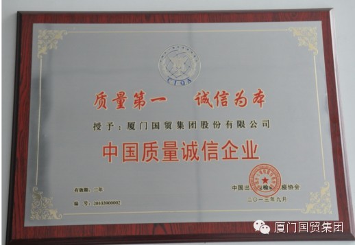 近日,中國(guó)出入境檢驗(yàn)檢疫協(xié)會(huì)公布2013中國(guó)質(zhì)量誠(chéng)信企業(yè)名單,廈門國(guó)貿(mào)第二次蟬聯(lián)此項(xiàng)稱號(hào)。