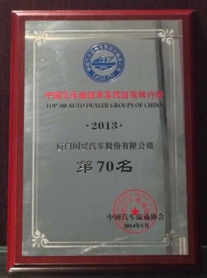 5月28日,中國(guó)汽車(chē)流通協(xié)會(huì)召開(kāi)發(fā)布會(huì),揭曉2013年度中國(guó)汽車(chē)流通行業(yè)經(jīng)銷(xiāo)商集團(tuán)百?gòu)?qiáng)名單。繼去年首次榮登百?gòu)?qiáng)榜后,國(guó)貿(mào)汽車(chē)位居第70名,蟬聯(lián)榜單。
