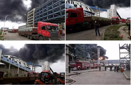 根據(jù)要求,所有車輛必須在原地待命,等待現(xiàn)場指揮部的通知后再分批入場。在現(xiàn)場面對寒冷的天氣、刺鼻的氣味、滾滾濃煙及儲罐隨時會發(fā)生爆炸的危險,所有人員仍堅守待命。到 8日上午10時,接到指揮部通知,我司三臺車進場卸貨,11:20左右,廠區(qū)內(nèi)又發(fā)生爆炸,救援小組人員立即撤離現(xiàn)場,轉(zhuǎn)移到相對安全的地帶;終于在14:00,再次接到通知,所有車輛陸續(xù)進場卸貨;到17:30,我司派出的11臺車輛全部卸貨完畢,參與人員圓滿完成運輸任務(wù)并陸續(xù)返回。但鑒于火勢情況復(fù)雜,參與人員仍隨時待命等候派遣。