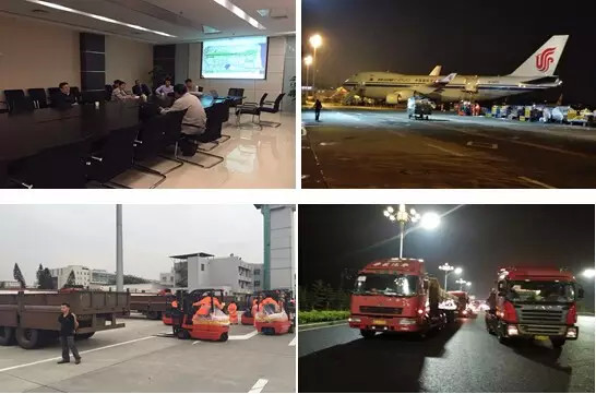 7日上午10時,負責(zé)此項救援工作的國貿(mào)泰達物流公司急速調(diào)集10輛集裝箱拖車趕到機場參與運輸。但由于現(xiàn)場集裝箱車在裝卸貨方面存在限制,導(dǎo)致較難在短時間內(nèi)快速裝卸大批次救援物資。于是他們當(dāng)機立斷更換運輸車輛的類型,多方努力重新調(diào)集11輛更適合于大宗物資運輸、裝卸的欄板運輸車并集結(jié)于機場外等候。傍晚,隨著救援、應(yīng)急處置物資通過空運匯齊機場,參與救援的同志第一時間組織裝運,分兩批次于7日晚近12點將救援物資安全運抵古雷事故現(xiàn)場。