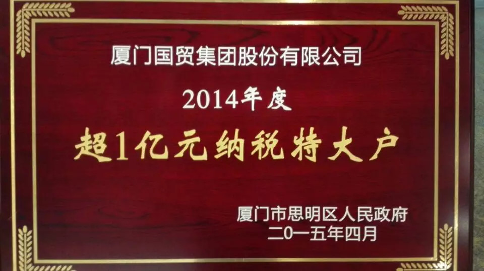 6月12日,思明區(qū)政協(xié)主席陳炳良等區(qū)領(lǐng)導(dǎo)蒞臨廈門國貿(mào)集團,為公司榮獲思明區(qū)2014年度超1億元納稅大戶授牌。陳金銘總裁等公司領(lǐng)導(dǎo)參加了授牌儀式。