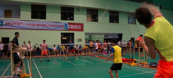 5月21日下午,動感國貿(mào)2016廈門國貿(mào)集團(tuán)職工俱樂部羽毛球賽在體育中心偉士羽毛球館開戰(zhàn)。如果說往年是戰(zhàn)火熊熊,強(qiáng)強(qiáng)對壘,今年則是一改以往刀光劍影的緊張氣氛,在周末時間,讓羽毛球愛好者們攜手享受羽毛球帶來歡樂趣味。