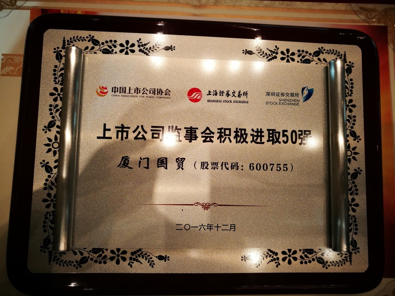 今日,由中國上市公司協(xié)會聯(lián)合上海證券交易所、深圳證券交易所共同主辦的“上市公司監(jiān)事會最佳實踐評選”頒獎典禮在北京舉行。廈門國貿(mào)榮獲“上市公司監(jiān)事會積極進取50強”。這是福建地區(qū)唯一獲此獎項的上市公司。