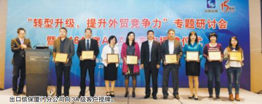 在中國信保近日舉辦的“轉(zhuǎn)型升級,提升外貿(mào)競爭力”專題研討會暨AAA級客戶授牌儀式上,廈門國貿(mào)被中國信保授予AAA級客戶。據(jù)悉,中國信保將對獲授AAA級客戶的企業(yè)從承保、理賠、增值服務等方面制定差異化政策,大力支持這些重點客戶使用個性化承保方案開拓海外市場。