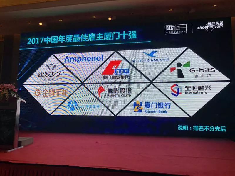 1月24日,“數(shù)字驅(qū)動,智造未來”2017中國年度最佳雇主頒獎盛典在廈門舉行。活動當天揭曉了2017年廈門年度最佳雇主10強,廈門國貿(mào)以絕對優(yōu)勢,再次入選廈門年度最佳雇主10強榜單。