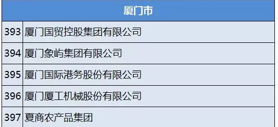 廈門市入選的五家國企