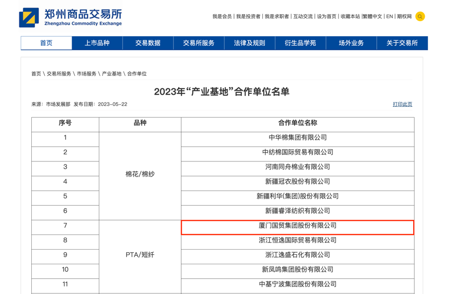 國貿(mào)股份獲評鄭商所PTA-短纖板塊“產(chǎn)業(yè)基地”合作單位。