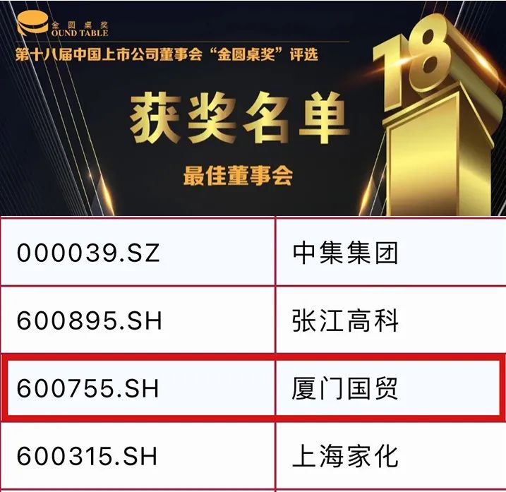 廈門國貿(mào)榮獲“金圓桌獎”公司獎最佳董事會