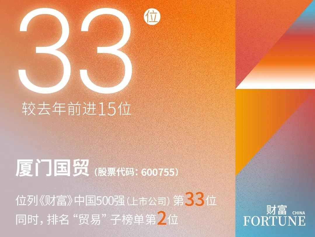 前進(jìn)15位!廈門國貿(mào)位列《財(cái)富》中國500強(qiáng)(上市公司)第33位!
