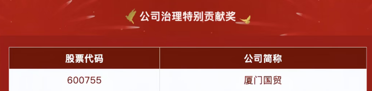 廈門國貿(mào)榮獲第二十屆 “金圓桌獎(jiǎng)”之“公司治理特別貢獻(xiàn)獎(jiǎng)”。