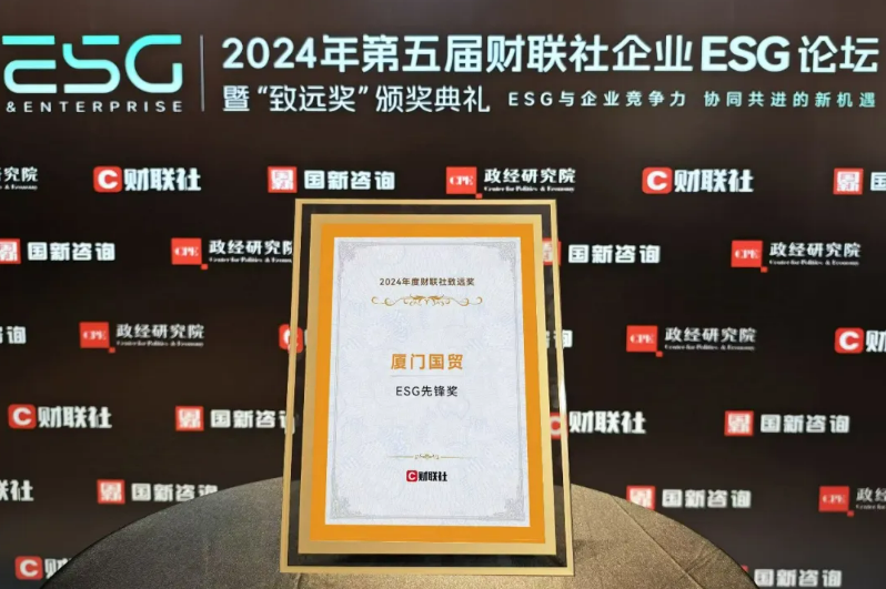 廈門國(guó)貿(mào)榮獲2024年度財(cái)聯(lián)社致遠(yuǎn)獎(jiǎng)·ESG先鋒獎(jiǎng)