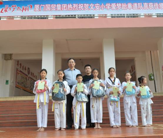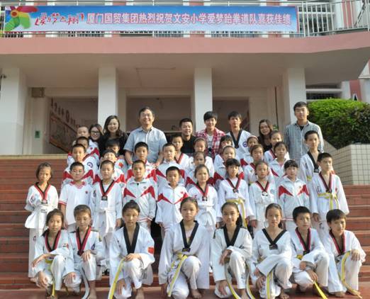文安小學(xué)愛(ài)夢(mèng)跆拳道隊(duì)成立于今年年初,由廈門國(guó)貿(mào)集團(tuán)贊助支持,并取名為“愛(ài)夢(mèng)