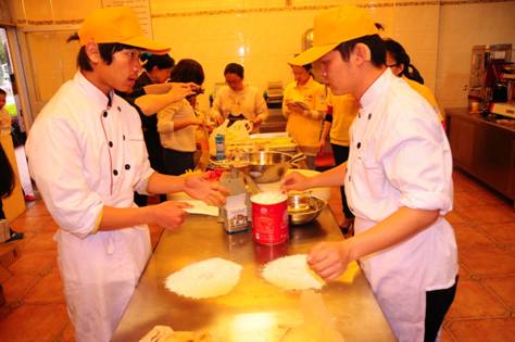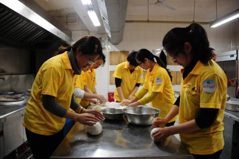 本次比賽吸引了眾多美食愛好者參加,他們分成兩隊(duì),一隊(duì)跟隨特教學(xué)校的老師和學(xué)生學(xué)習(xí)制作比薩、蛋糕、餅干等西點(diǎn),另一隊(duì)跟隨國貿(mào)集團(tuán)烹飪俱樂部的“老師”學(xué)習(xí)制作四喜餃子、水晶餃等中式點(diǎn)心。特教學(xué)校和國貿(mào)集團(tuán)的“老師”們分別介紹了制作要點(diǎn)后,大家就開始分頭動(dòng)手制作各式美食了。