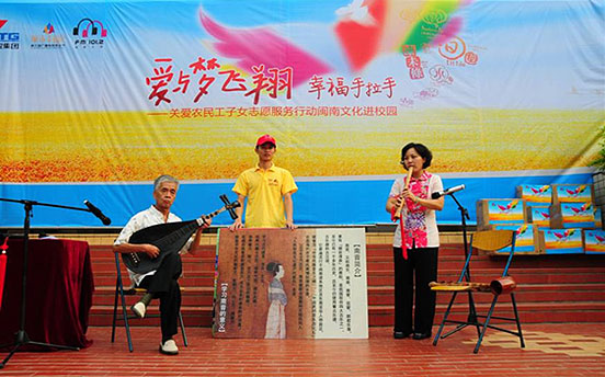 2011年9月,廈門國貿(mào)集團聯(lián)手廈門廣電集團閩南之聲欄目與文安小學,結(jié)合助學行動,在文安小學舉辦了一場“愛與夢飛翔 幸福手拉手——關(guān)愛農(nóng)民工子女志愿服務(wù)行動閩南文化進校園活動”,將閩南傳統(tǒng)文化南音、傀儡戲帶入文安小學。兩位資深老師妙語連珠的講課,不但調(diào)動全場孩子的熱情,同時讓學生們切身感受到閩南文化博大精深的韻味。