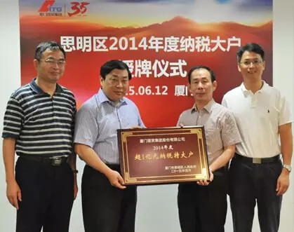 6月12日,思明區(qū)政協(xié)主席陳炳良等區(qū)領(lǐng)導(dǎo)蒞臨廈門國貿(mào)集團(tuán),為公司榮獲思明區(qū)2014年度超1億元納稅大戶授牌。陳金銘總裁等公司領(lǐng)導(dǎo)參加了授牌儀式。