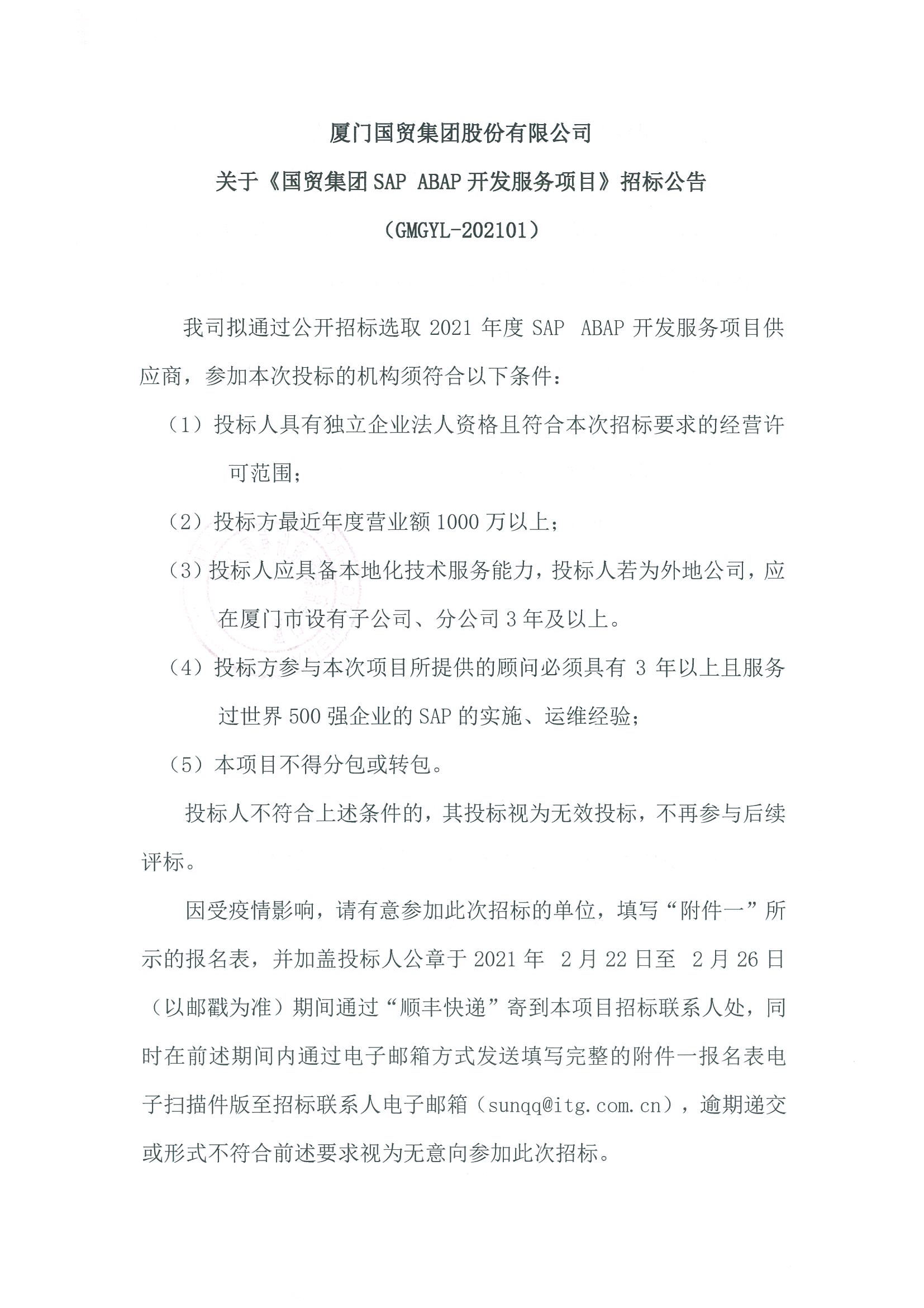 關于《國貿集團SAP ABAP開發(fā)服務項目》招標公告