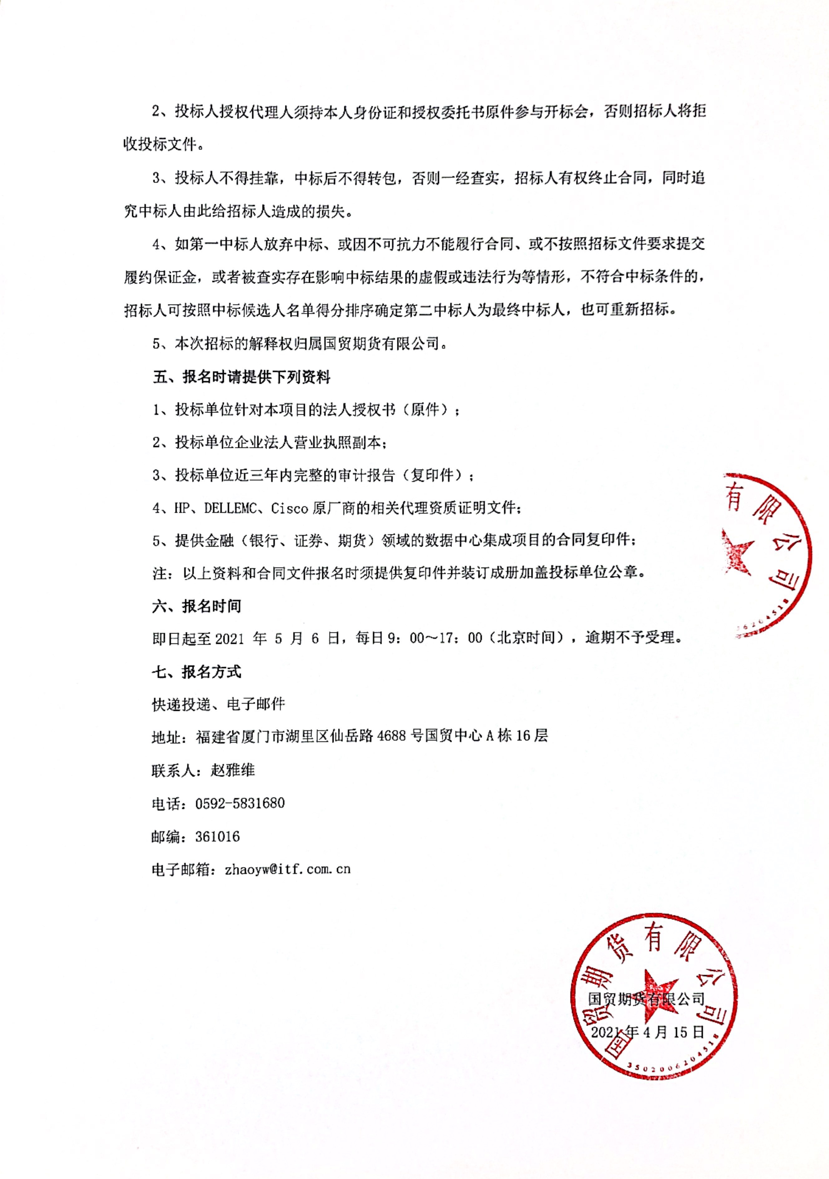 【國貿(mào)期貨】廈門災備機房搬遷建設項目招標公告