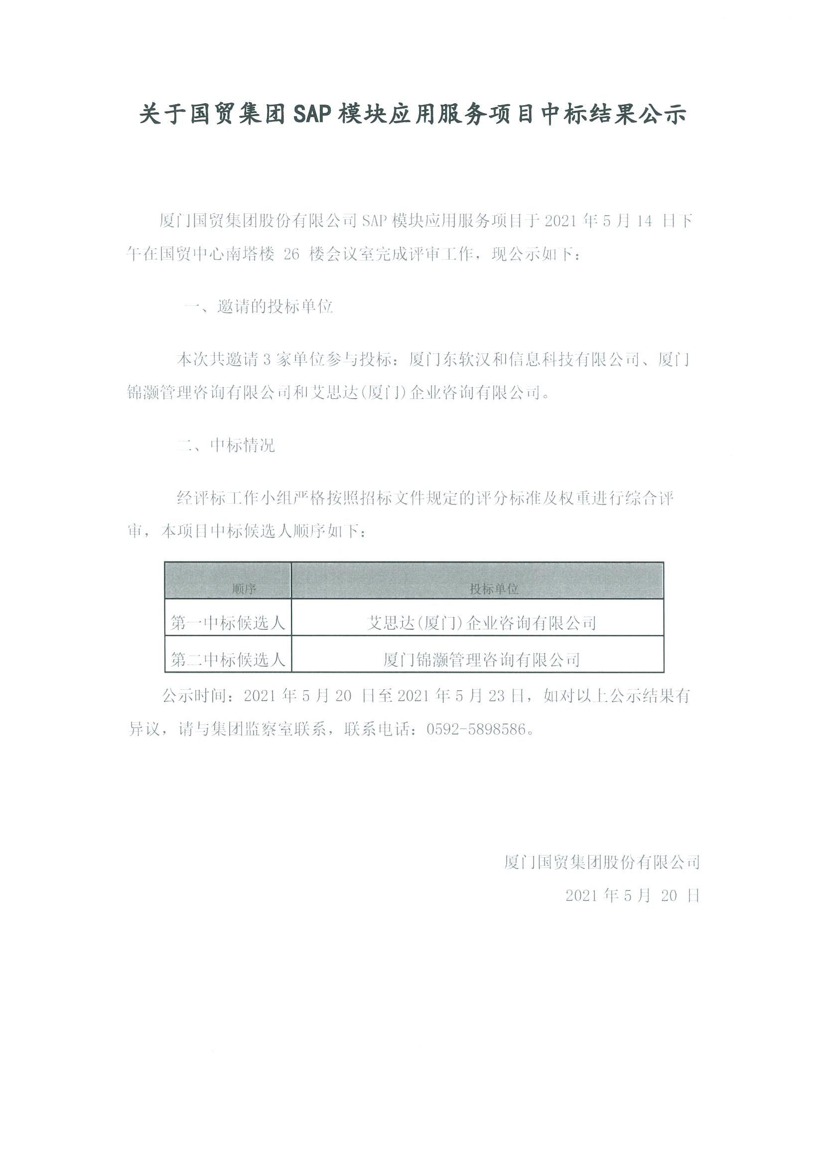關(guān)于國貿(mào)集團SAP模塊應(yīng)用服務(wù)項目中標結(jié)果公示