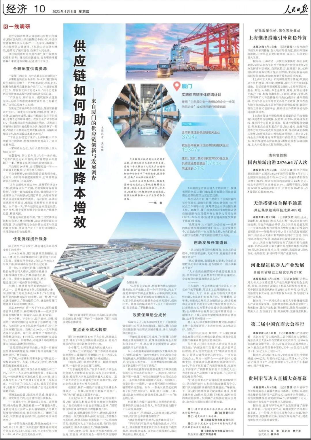 4月6日,《人民日?qǐng)?bào)》刊發(fā)了來自廈門的供應(yīng)鏈創(chuàng)新發(fā)展的長(zhǎng)篇調(diào)研,并以國(guó)貿(mào)股份等企業(yè)為例,帶讀者走進(jìn)廈門供應(yīng)鏈發(fā)展的“前世今生”。