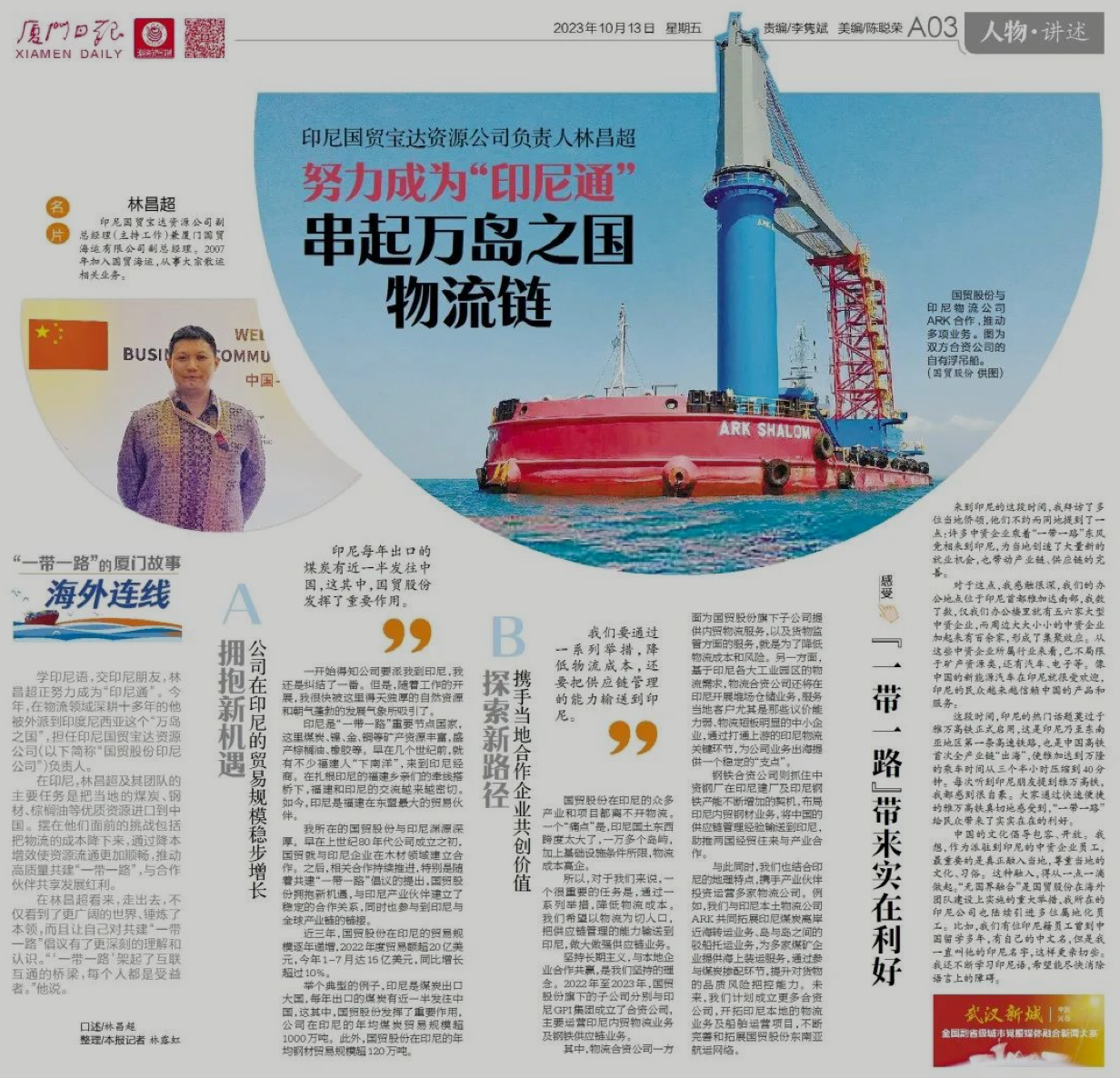 印尼國(guó)貿(mào)寶達(dá)資源公司負(fù)責(zé)人林昌超: 努力成為“印尼通” 串起萬島之國(guó)物流鏈