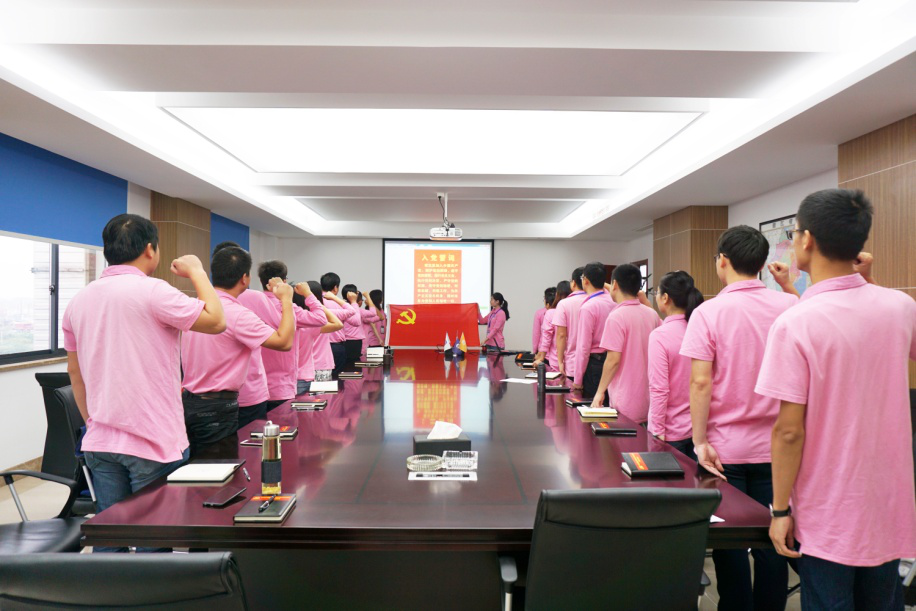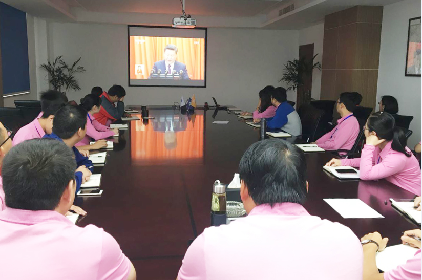 大會(huì)開(kāi)幕當(dāng)天,公司全體黨員佩戴黨徽,齊聚會(huì)議室,舉起右拳,面向鮮紅的黨旗,一起莊嚴(yán)地重溫入黨誓詞,以昂揚(yáng)的姿態(tài)和飽滿(mǎn)的熱情聆聽(tīng)十九大報(bào)告,學(xué)習(xí)十九大精神。