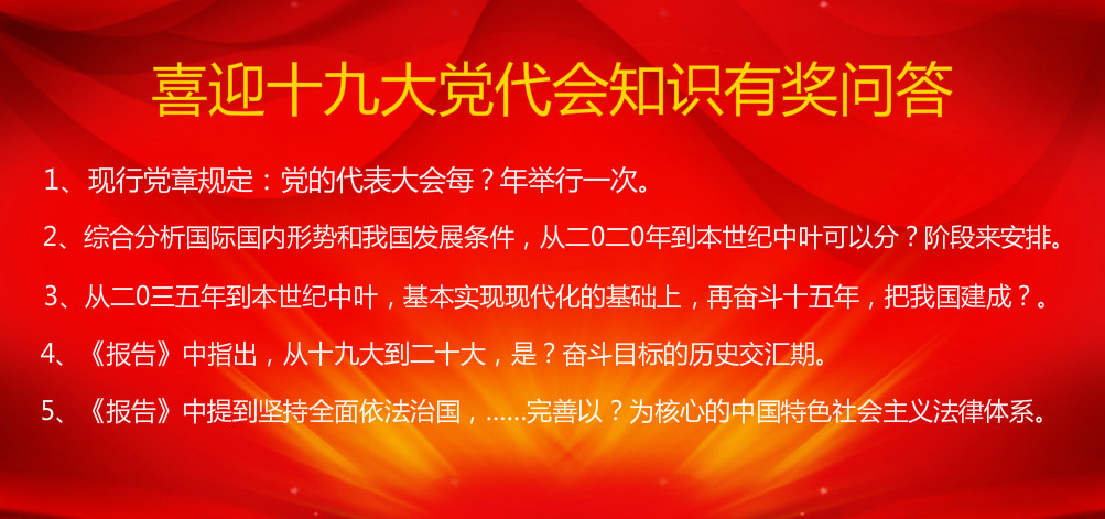 大會(huì)期間,公司黨總支還開(kāi)展了“喜迎十九大知識(shí)競(jìng)賽”活動(dòng),競(jìng)賽題目以習(xí)總書(shū)記十九大報(bào)告為主要內(nèi)容,黨員QQ群每日線上搶答,黨員干部參與熱情高漲,積極踴躍答題,營(yíng)造了濃濃的大會(huì)氛圍,也加深了大家對(duì)十九大報(bào)告的學(xué)習(xí)效果。
